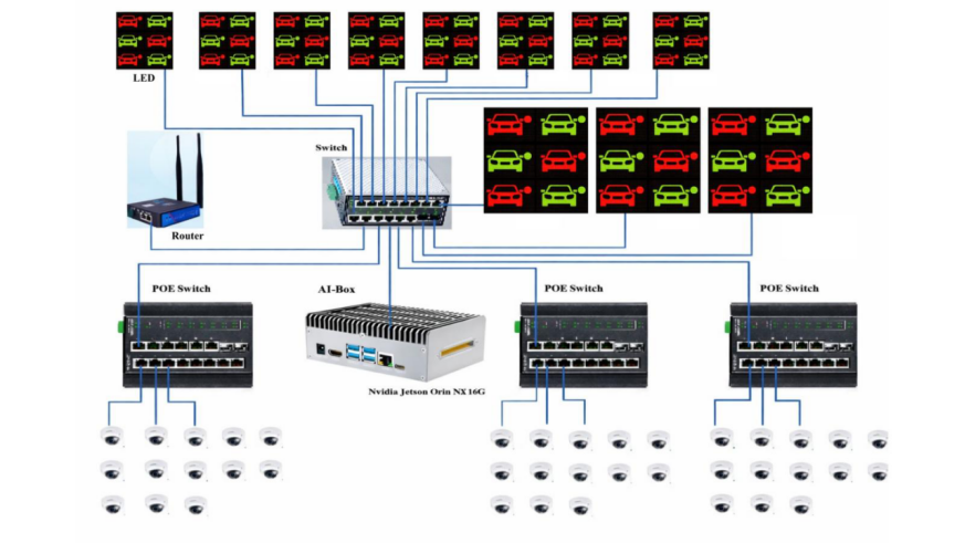 The edge intelligence layer is powered by the Jetson Orin NX 16GB, which serves as the core AI inference unit. By running an object detection model, the system analyzes video streams in real time and determines whether a vehicle is occupying a fueling position.